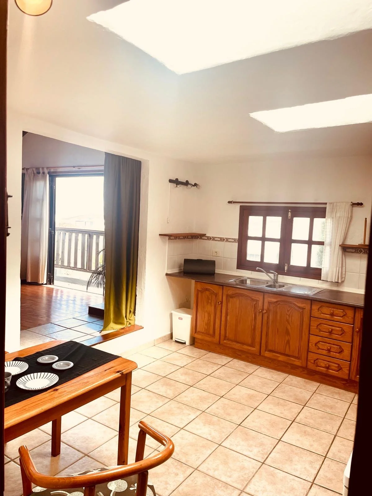 • The upper apartment offers a double bedroom, a full bathroom, a spacious kitchen, and a living room with a balcony overlooking the stunning Famara views.